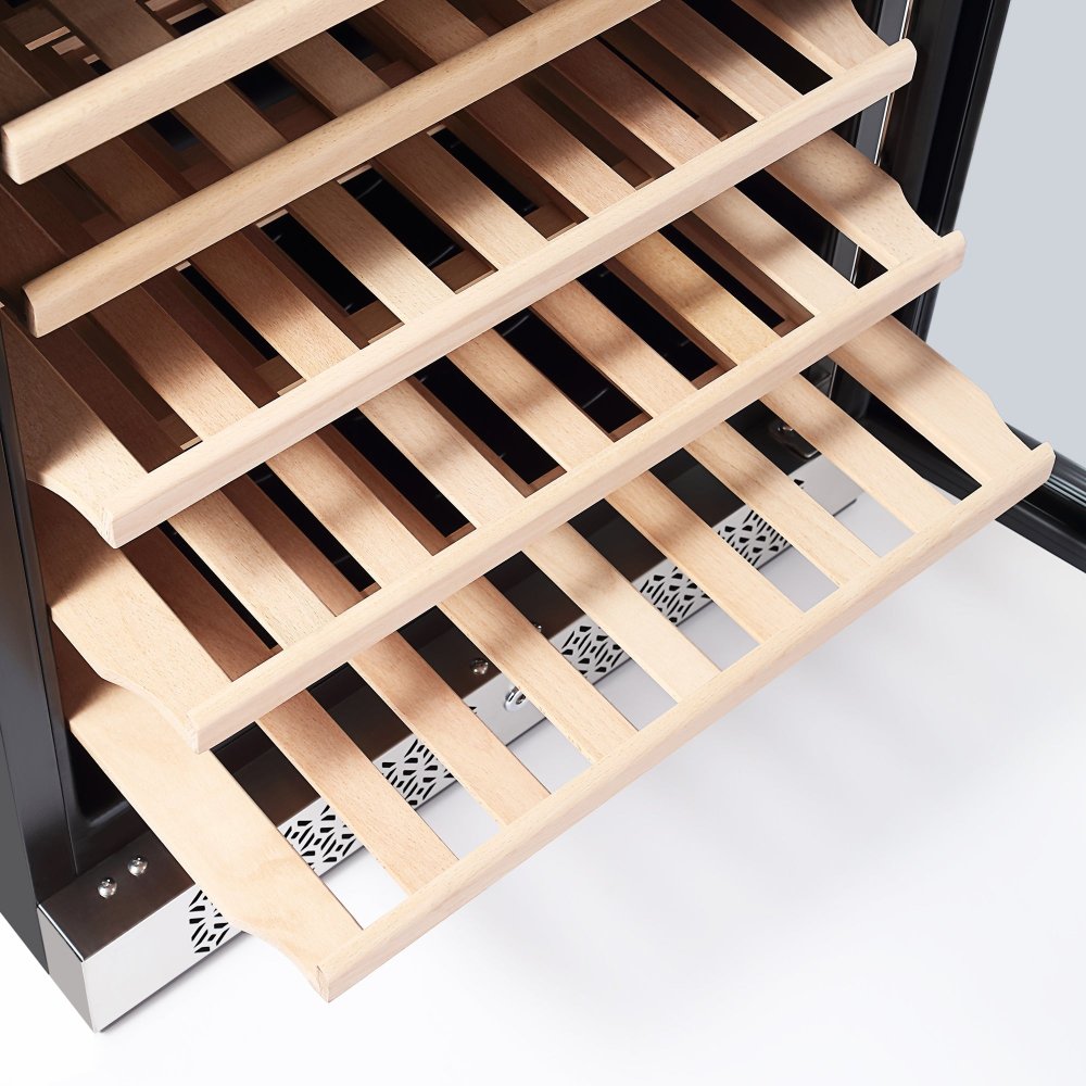 Equipped with a 52-bottle capacity and smart self-care features, this fridge keeps your wines perfectly conditioned while minimizing maintenance. Automatic defrosting and a carbon filter ensure a clean and safe interior, providing hassle-free operation for daily use.