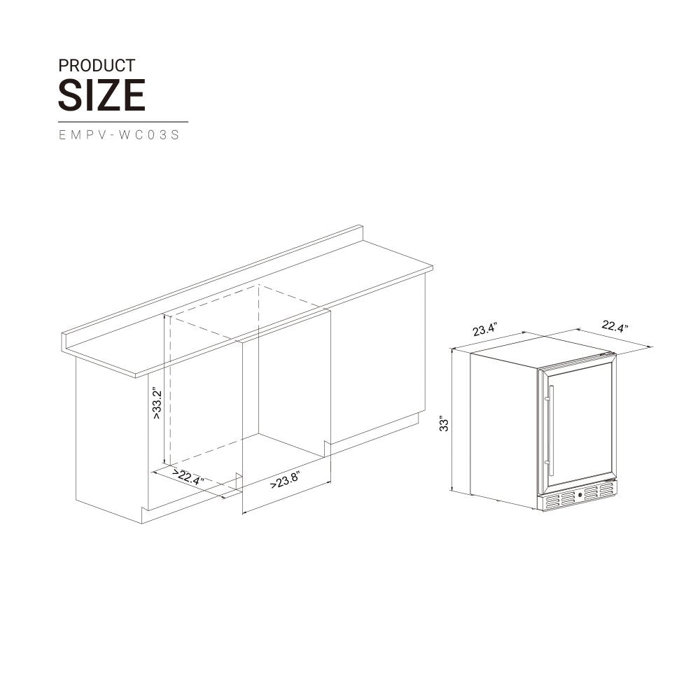 | Wine Cooler Dimensions | 23.4" L X 22.4" W X 33" H |