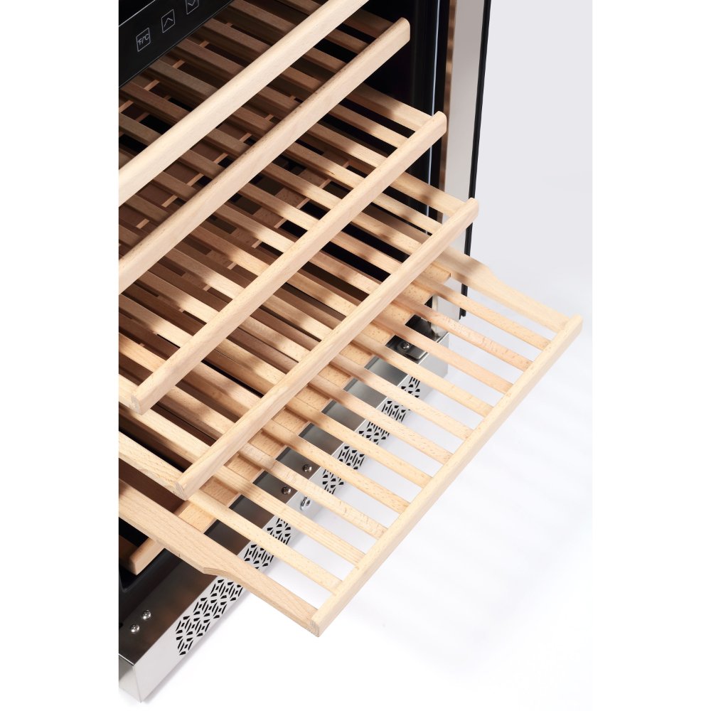 This medium-sized dual zone wine cooler is designed to fit seamlessly into living rooms, game rooms, or entertainment spaces while offering generous storage for growing wine collections. With capacity for up to 116 bottles, it provides an ideal balance between size and functionality, making it perfect for amateur collectors who want organized, temperature-controlled storage without dedicating an entire room.