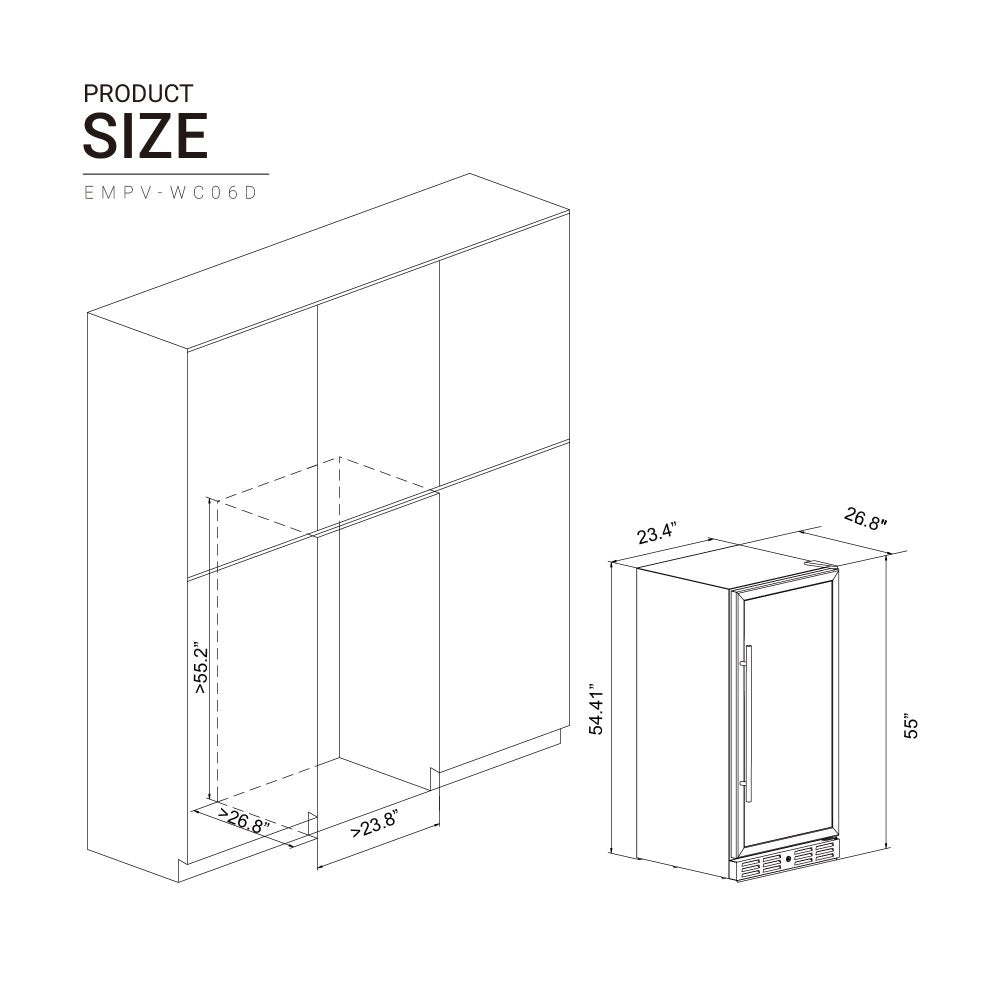 | Wine Cooler Dimensions | 23.4" L X 26.8" W X 55" H |